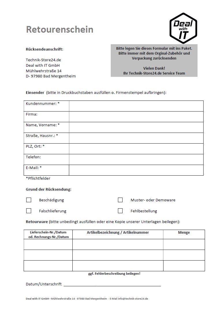 Retourenschein (0)